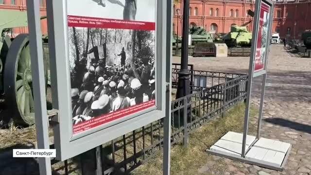 «Освобождение Европы Красной армией» — фотовыставка с таким названием открылась в артиллерийском музее. Около 40 исторических снимков запечатлели победное шествие советских солдат в конце Великой Отечественной войны по городам и деревням Восточной и Центральной Европы. Вглядывалась в отпечатки истории корреспондент ЛенТВ24 Софья Краева. Фотовыставка компактно расположилась во дворе артиллерийского музея. С десяток стендов с фотографиями, кажется, меркнут перед мощью других экспонатов — артиллерийских установок, гаубиц и пушек. Но за каждым снимком — трагичные и радостные, полные героизма и военных ужасов человеческие истории. Освобождение, например, концлагерей. Можно вот посмотреть, в каком состоянии люди, можно сказать, в инвалидном. Майданек на территории Польши — это июнь 1944 года. Можно себе представить, люди вообще не знали, когда этот кошмар для них кончится, и вот внезапно кончился. Персональную экскурсию для нас за считанные минуты до официального открытия провел куратор выст