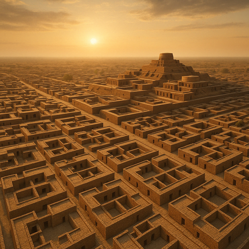 Если бы существовала машина времени, и вы перенеслись в Мохенджо-Даро 2600 года до н.э., вы были бы поражены. Город построен по строгой сетке — прямые улицы пересекаются под прямым углом, образуя правильные кварталы. И это за две тысячи лет до того, как римляне начали применять подобную городскую планировку!