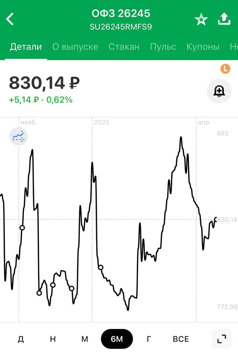 Эээх… а $imoexf все растёт, но пока продолжу докупать #офз на #иис Уже на неделе докупил 26246-26248 Сегодня беру 26245, пока ещё доходность к погашению под 16% Полная моя подборка офз с ежемесячными выплатами ниже Январь, июль $SU26239RMFS2 - 6,9% Февраль, август $SU26240RMFS0 - 7,0% Март, сентябрь $SU26246RMFS7 - 12,00% Апрель, октябрь $SU26245RMFS9 - 12,0% Май, ноябрь $SU26247RMFS5 - 12,25% Июнь, декабрь $SU26248RMFS3 - 12,25% Посмотрим, что будет завтра #прояви_себя_в_пульсе #новичок_в_пульсе