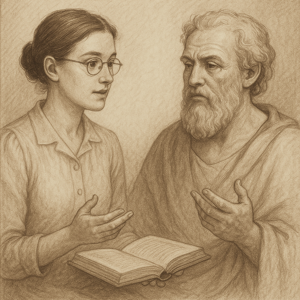 Философ — напротив, разрушает рамки. Он ставит под сомнение очевидное, ломает шаблоны. Его задача — научить мыслить: задавать вопросы, искать истину, быть свободным. 🧩 Эти двое должны встретиться