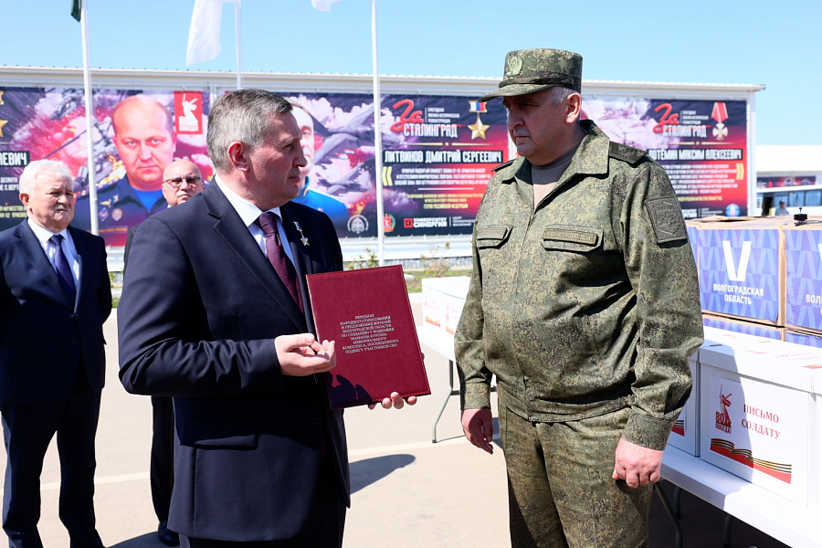 Более 600 единиц новейшего оборудования и варианты эскизов памятника героям СВО были направлены военнослужащим. Отправка груза состоялась на площадке «Юный ястреб». В значимом мероприятии принял участие Андрей Бочаров. Фото: администрация Волгоградской области Бронеавтомобили «Сармат», мотоциклы и квадрокоптеры отправлены в зону СВО в канун дня Победы. Из волгоградского региона бойцы получат более 600 единиц спецтехники, а также письма детей со словами поддержки. Губернатор Волгоградской области передал варианты эскизов народного памятника СВО, чтобы военнослужащие лично оценили предложения жителей. «Очень важно, чтобы бойцы на передовой имели возможность услышать, что мы гордимся, помним, дорожим и считаем, что на сталинградской земле у святого для всех места – подножия Мамаева кургана – должен быть построен комплекс», – отметил Андрей Бочаров. Кроме того, сегодня на площадке «Юного ястреба» состоялось вручение государственных и ведомственных наград отличившимся военнослужащим. Ордена