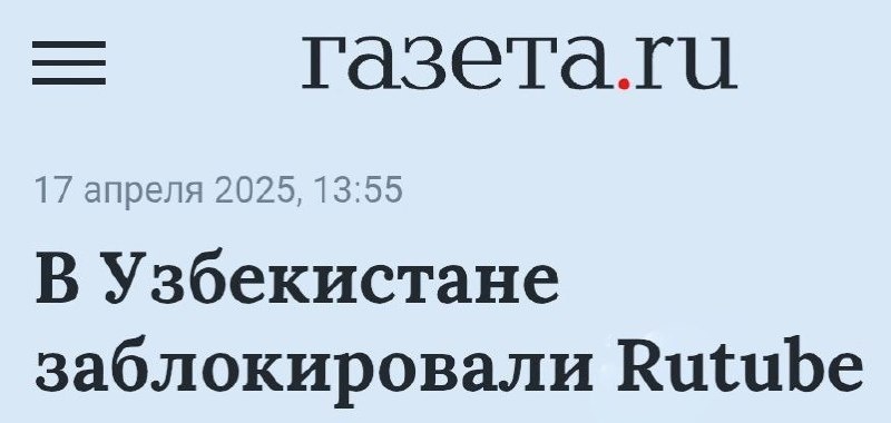 🇺🇿🇷🇺 В Узбекистане заблокировали Rutube. "При переходе на платформу пользователи видят сообщения об ограничении ресурса на основании постановления кабинета министров от сентября 2018 года. Там указано, что сайт можно заблокировать из-за пропаганды войны, насилия и терроризма, распространения информации, возбуждающей национальную, расовую, этническую или религиозную вражду. Власти Узбекистана пока не прокомментировали блокировку". А его в Узбекистане вообще часто посещали?