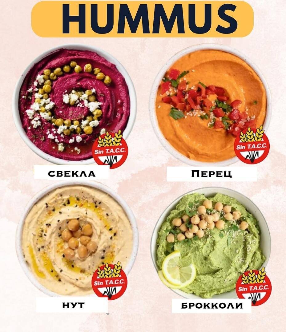 🥣 Хумус — закуска из нутового пюре, в состав которой обычно добавляются кунжутная паста (тахини), оливковое масло, чеснок, сок лимона