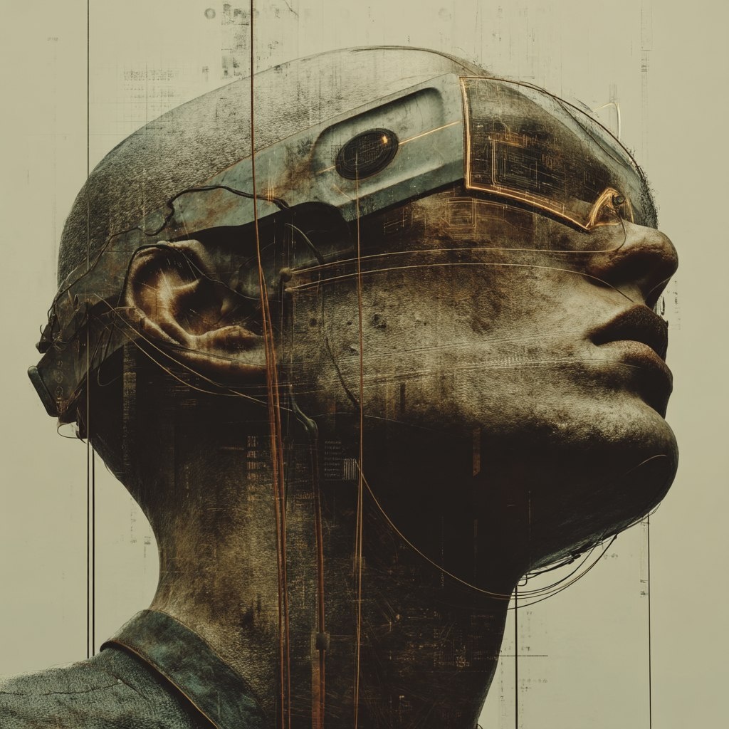 Создано на основе запроса: Advanced cyber visor worn across the eyes, transparent screen overlaying AR feed, modular tech pieces built into temples, etched glyphs glowing faintly around frame, subtle electric blue light, minimal dystopian design, clean metallic textures, worn by faceless figure in urban data-drenched environment, hyperreal techwear fashion --- Автоперевод: Усовершенствованный кибер-козырь, который носят на глазах, прозрачный экран, наложенный на экране, модульные технологические изделия, встроенные в храмы, травления глифов, слабо светящиеся вокруг рамы, тонкий электрический синий свет, минимальный дистопический дизайн, чистая металлическая текстура, носится безличальной фигурой в окружающей среде гиперреала Tech Как тебе такая картинка? 🤔 https://dzen.ru/id/65c0c65c86e4f837c27b24d7 #ИИ #AI #нейросеть #midjourney #art