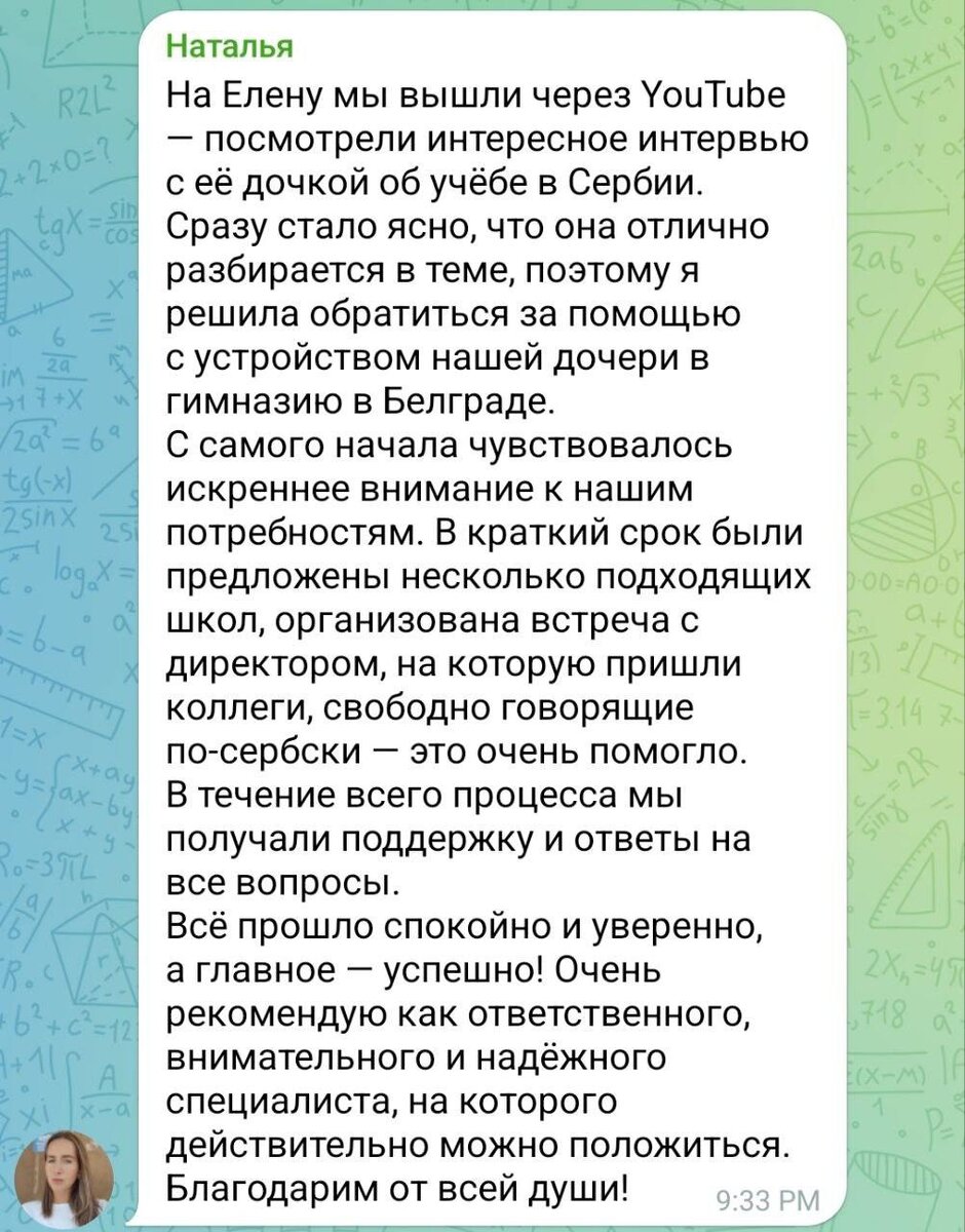 ✏️ Записаться на консультацию по оформлению или сопровождение в школу/гимназию в Белграде: @ellen_consulting