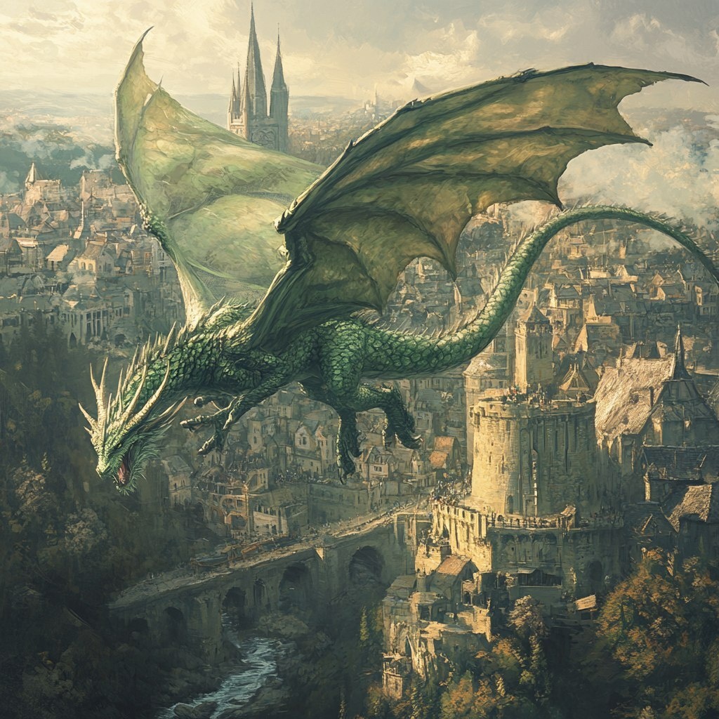 Создано на основе запроса: a green dragon flying over a medieval town --- Автоперевод: Зеленый дракон, летящий над средневековым городом Как тебе эта генерация? 🤔 https://dzen.ru/id/65c0c65c86e4f837c27b24d7 #ИИ #AI #нейросеть #midjourney #art