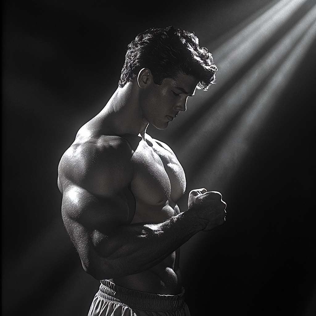 Создано на основе запроса: young male Reg Park mr Universe, muscular, flexing, rave party light --- Автоперевод: Молодой мужчина -рег Парк, мистер Вселенная, мускулистая, сгибающая, восторженная вечеринка свет Отлично выглядит? 🤔 https://dzen.ru/id/65c0c65c86e4f837c27b24d7 #ИИ #AI #нейросеть #midjourney #art