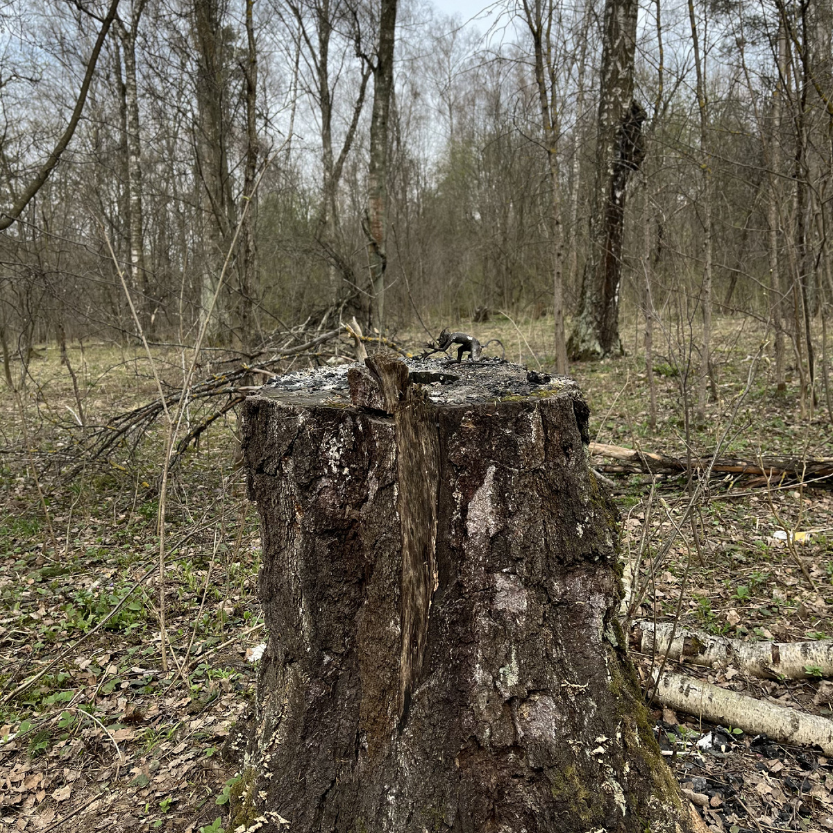 Иду я, меценат, кормить белок в лесу. Кто не знает, я держу три точки общепита для них😎 Подхожу к последней точке, а там есть высокий пень, на котором обедает живность, поэтому меня вначале не смутило, что какая-то фигура застыла в движении. Знаете, такая поза, когда кошка шла бедокурить, а ты её спалил и она замерла - дескать, а я ничего и не делаю. Вот в такой позе стоит на пне нечто. Я тоже замираю. Жду. Нифига, стоит. Начинаю присматриваться. Чо за фигня?! Подхожу и вижу это. Жутковатое зрелище первые 5 секунд.