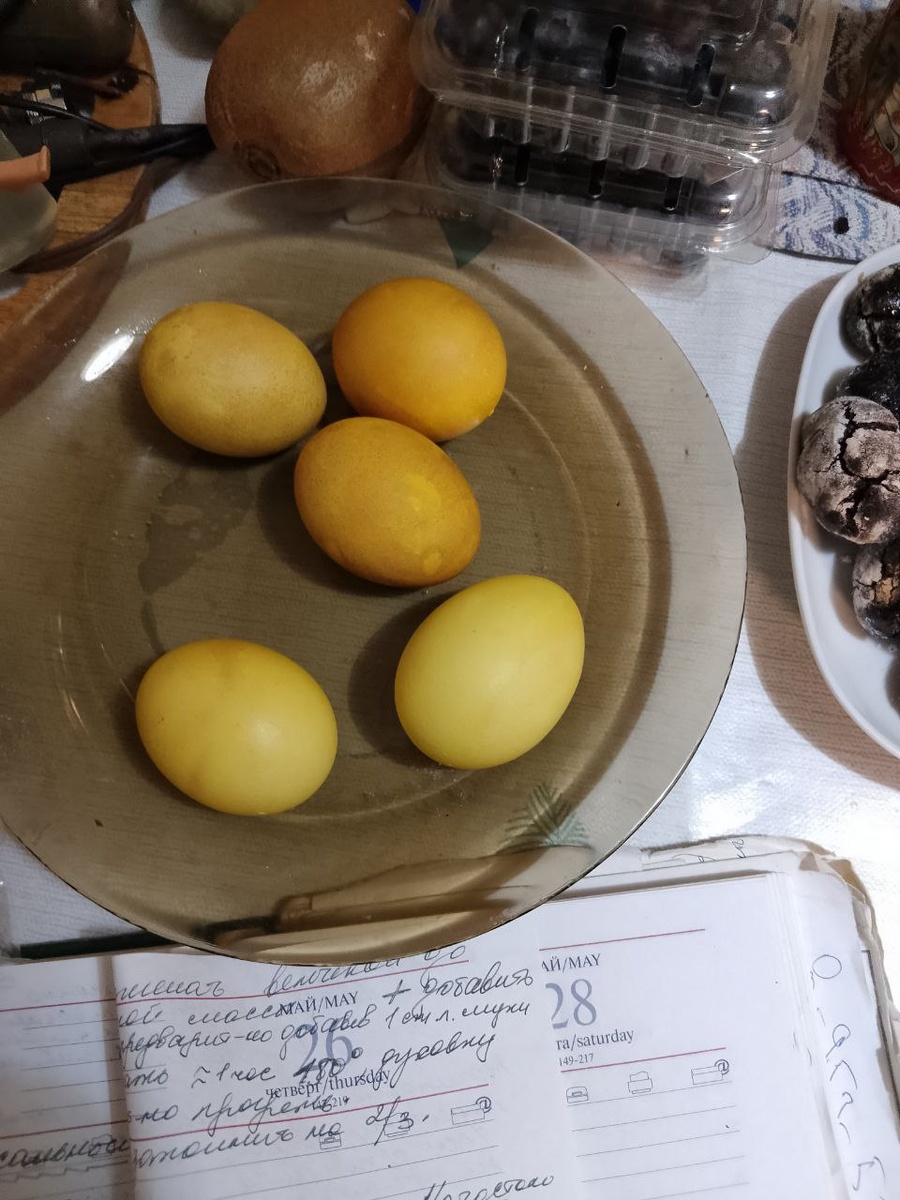 Далее отвариваем яйца🥚🥚в воде с добавлением куркумы, получая жёлтый цвет🎨)
