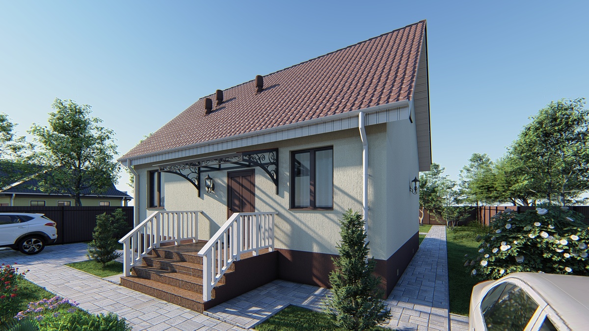 Представьте себе дом площадью 75,33 м², где каждый метр продуман и наполнен жизнью. Проект компактного дома замечательно подойдет для небольшой семьи, ценящей комфорт. В доме предусмотрена просторная гостиная площадью 22 м² - центр общения и отдыха, связанная с остальными помещениями. При входе, расположено крыльцо, переходящее в тамбур, чтобы оставить уличную одежду и войти в домашнее пространство с ощущением порядка и уюта. Кроме гостиной, в доме две спальни: одна площадью 12 м², вторая - 9 м², что позволяет выделить личное пространство каждому члену семьи или использовать одну комнату под кабинет. Отдельная кухня, площадью 5 м², предназначена для удобной и комфортной готовки. Особое достоинство проекта - просторная терраса площадью 15 м² с выходом из гостиной. Это отличное место для отдыха на свежем воздухе, приема гостей или семейных ужинов в теплое время года. Этот дом - не просто место для жизни, а пространство, где каждый уголок приглашает создавать яркие моменты и наполнять по