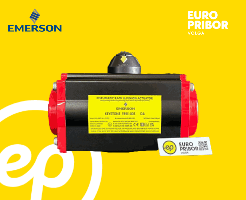 Пневмопривод Emerson F89E-003 DA представляет собой компактное высокопроизводительное устройство для управления промышленной трубопроводной арматурой. Этот привод специально разработан для работы с шаровыми кранами и поворотными затворами в системах автоматизации технологических процессов. 1. Механическая часть Корпус: литой алюминиевый сплав с порошковым покрытием Приводной механизм: реечно-шестеренчатая передача Угол поворота: стандартно 90° (возможна настройка 30-100°) Монтажный интерфейс: ISO 5211 стандарт 2. Пневматическая система Рабочая среда: очищенный сжатый воздух (40 мкм фильтрация) Рабочее давление: 2.8-6.3 бар (опционально до 8.4 бар) Время срабатывания: 0.8-3 сек (зависит от давления) Крутящий момент 30 Нм (при 5.6 бар) Температурный диапазон -20°C до +80°C Степень защиты IP65 (стандарт), IP67 (опция) Материалы уплотнений NBR (стандарт), FKM, EPDM (опции) Вес 3.2 кг Габариты 180×140×105 мм Сжатый воздух подается в камеру привода через входной порт Поршневой механизм преоб