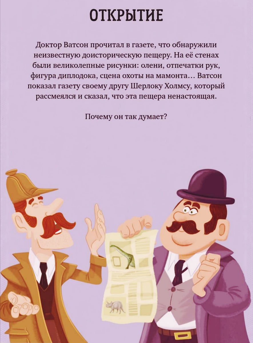 2. Шерлок Холмс понял, что пещера поддельная, потому что диплодоки и мамонты жили в разные эпохи, разделенные миллионами лет. Диплодоки исчезли задолго до появления мамонтов. Поэтому в одной пещере, созданной людьми доисторической эпохи, не могли быть изображения этих двух животных одновременно.