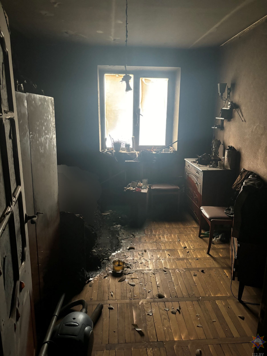 16 апреля в 15:53 на номер 112 поступило сообщение о пожаре в квартире на девятом этаже девятиэтажного жилого дома в г. Гомеле по ул. 50 лет БССР. На пожаре обнаружен погибший хозяин 1960 года рождения, пенсионер. В результате поврежден диван, закопчены стены и потолок в квартире. Рассматриваемая версия причины пожара – неосторожное обращение с огнем при курении.