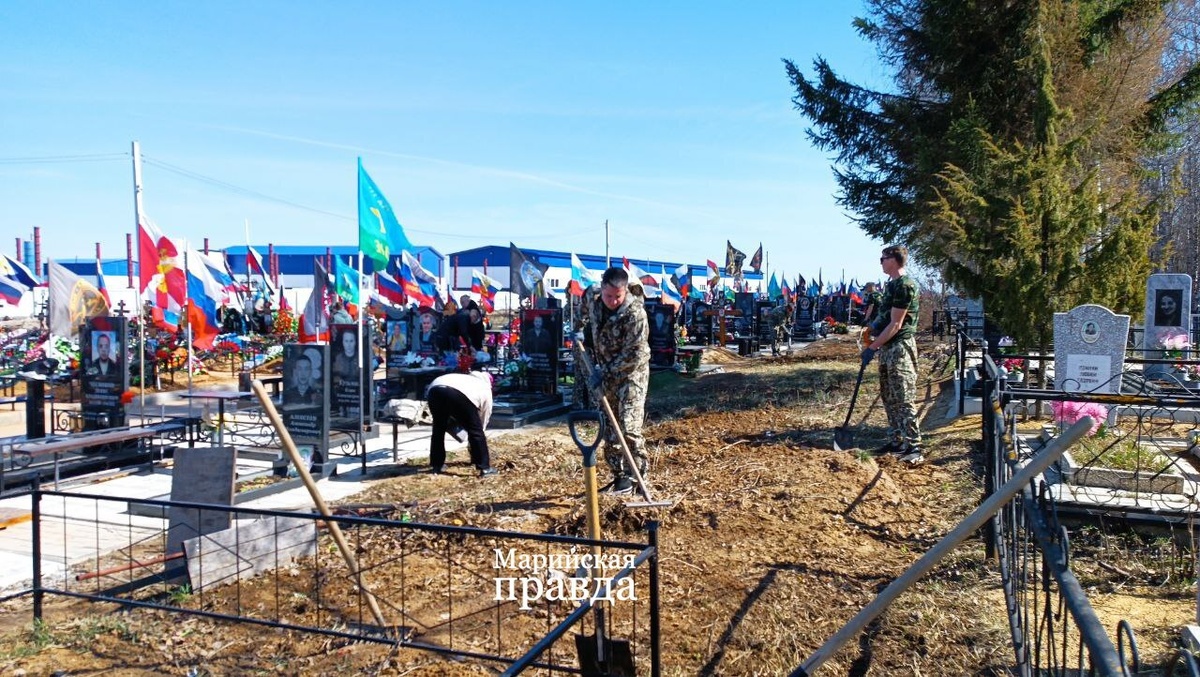 На «Аллее героев» Туруновского кладбища Йошкар-Олы прошел субботник Сегодня, 17 апреля, на Туруновском кладбище участники субботника благоустроили места захоронений защитников, павших на СВО, убрали мусор, поправили флаги. Кроме членов семей героев, сюда пришли и кадеты школы №29 им. Героя России Дамира Шаймарданова. - В рамках субботника мы обновили и деревянную скульптуру, которую открыли в прошлом году, называется она «Древо памяти». Ее создал неравнодушный горожанин Александр Васенин. Он взял на себя обязательства, что будет смотреть за этой фигурой и поддерживать ее в надлежащем состоянии, - рассказал корреспонденту «Марийской правды» Александр Архипенко, секретарь муниципального штаба Комитета семей воинов Отечества Йошкар-Олы. По словам Ирины Шаймардановой, мамы Героя России Дамира Шаймарданова, этот субботник был задуман 2 месяца назад. - Это не только уборка территории «Аллеи героев». Для нас это долг, который мы должны исполнить для ребят. Такой субботник теперь будет пр
