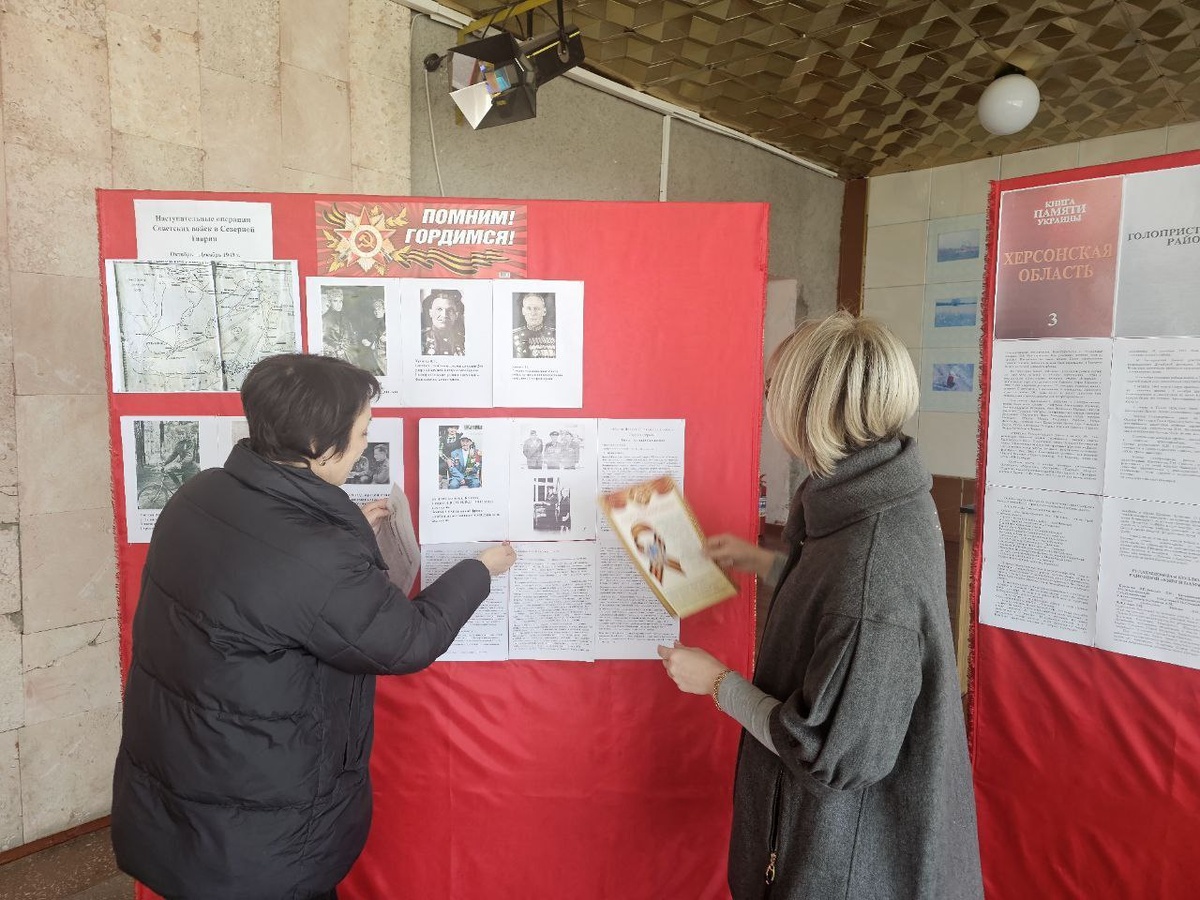 В Центре культуры и досуга села Круголоозерка открылась выставка к 80-летию Победы в Великой Отечественной войне. Посетители могут ознакомиться с архивными материалами, относящимися к тем временам, сообщила администрация Голопристанского округа. Выставка включает фотографии, документы, архивные справки, которые отражают героизм советских людей, участвовавших в войне и трудившихся в тылу. «Главной целью данной инициативы является сохранение исторической памяти и глубокое осмысление событий военного времени. Размещенные экспонаты — символ мужества и героизма советских солдат, которые напоминают нам о великом подвиге нашего народа», — прокомментировала первый заместитель главы администрации Юлия Черемисина. Херсонская область присоединится к Всероссийской акции «Диктант Победы». Свои знания о ключевых событиях, героях и фактах ВОВ смогут проверить учащиеся 75 образовательных учреждений. Ранее ТРК «Таврия» сообщала, что в Геническе проходит выставка икон «Радость всех радостей».