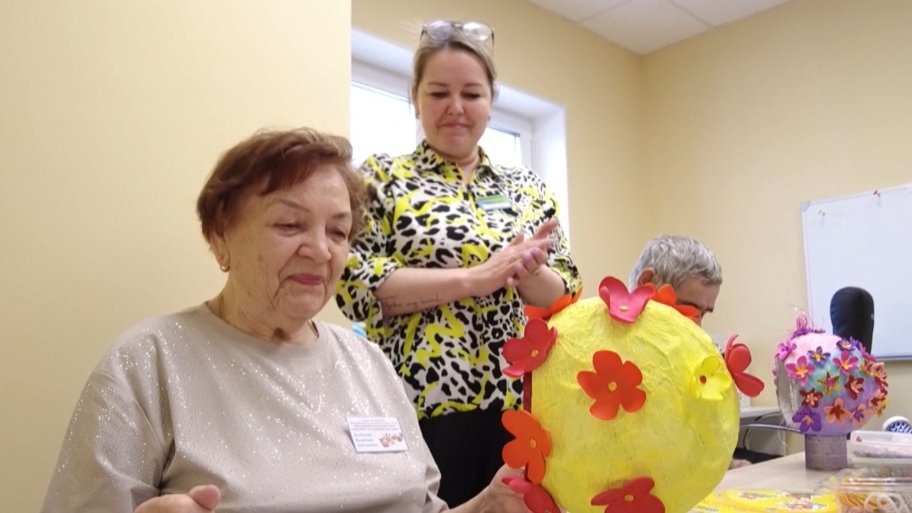 Специальный курс терапии для ветеранов Великой Отечественной войны организовали в реабилитационном центре Мегиона. Он включает в себя цикл медицинских процедур, физической терапии, творческих занятий, которые помогут труженикам тыла, блокадникам Ленинграда и новой категории — детям войны восстановить силы перед главным праздником страны — Днем Победы. Этот кабинет реабилитации напоминает не то зал для занятий физкультурой, не то группу в детском саду. Воспитанники здесь дети. Только не обычные, а дети войны, рожденные в 40-е годы прошлого века, когда в Советском Союзе шла Великая Отечественная. Пока одни благодаря современному оборудованию восстанавливают двигательные функции, другие занимаются на нейротренажерах. Тамара Зыкова, ветеран Великой Отечественной войны: «Первый раз, я еще эти фигуры не видела. Вроде бы ничего сложного нет, но лучше ведет правая рука, потому что я правша. Левая — хуже». На каждом из тренажеров ветераны выполняют упражнения от 5 до 10 минут. Этого хватает, чт