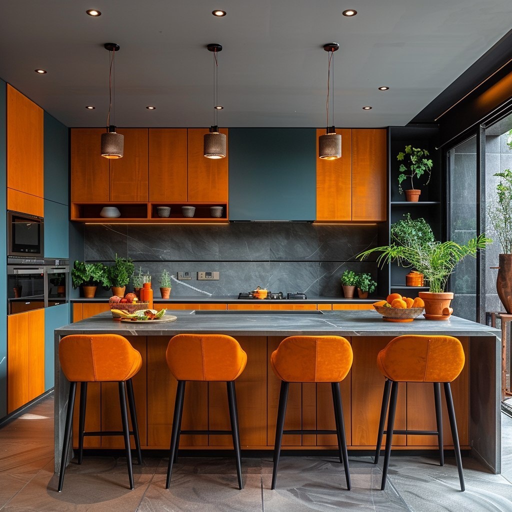 Создано на основе запроса: design a modern kitchen with eccentric colours on 3.81mx2.54m layout