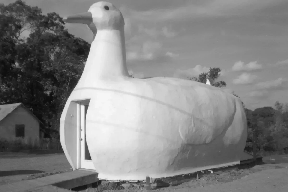 Здание «Большая утка» на Лонг-Айленде, построенное в 1931 году, было смоделировано как реклама в форме гигантской утки для продажи яиц. Но его форма вдохновила зарождающееся движение. Будучи придорожным памятником, оно имело широкое влияние, разрушая представления о том, на что могут быть похожи здания помимо домов и башен.