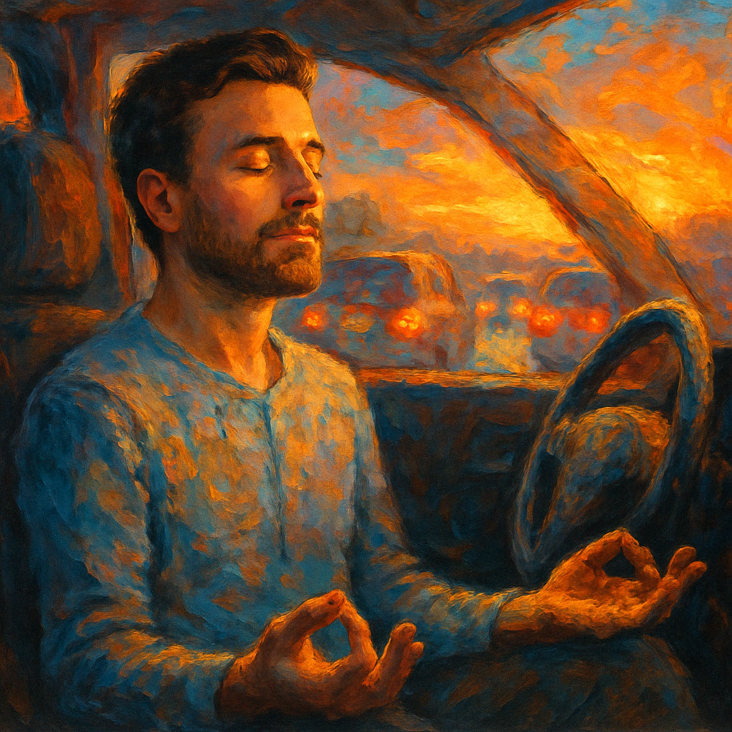 Сидишь в машине — ну и что? У тебя есть тело, дыхание и момент. Всё, что нужно для того, чтобы быть. Прямо здесь. Я начал экспериментировать. Вместо того чтобы лихорадочно листать новости или психовать на водителя справа, я просто стал дышать. Медленно, глубоко. Замечал, как руки лежат на руле. Как