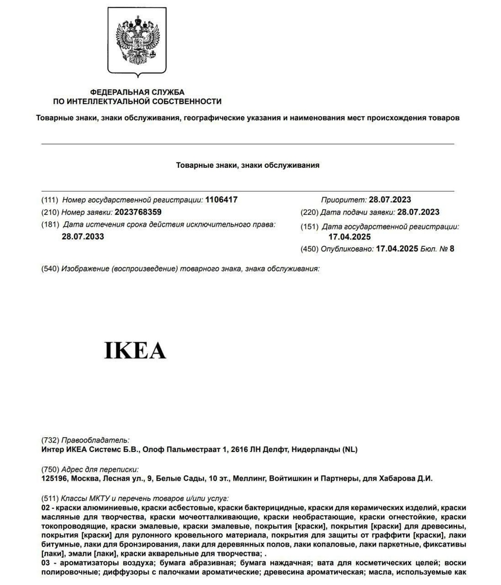 IKEA может вернуться в Россию Шведская компания зарегистрировала товарный знак в РФ. Заявка висела с 2023 года, но ее только что наконец-то одобрили. IKEA könnte nach Russland zurückkehren Ein schwedisches Unternehmen hat in der Russischen Föderation eine Marke eingetragen. Der Antrag war seit 2023 anhängig, wurde aber gerade endgültig genehmigt.