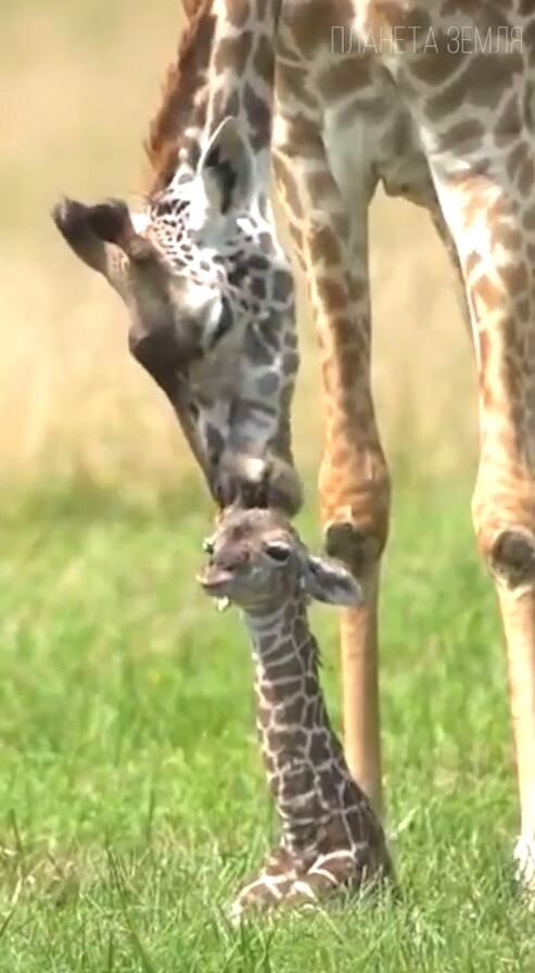 Жирафята рождаются стоя: мама не ложится. В результате новорождённый падает с высоты около 1,5 метров. Это звучит жёстко, но такой «пинок судьбы» стимулирует дыхание и помогает запустить работу организма. 🏃♂️ 2. Бегать — с рождения