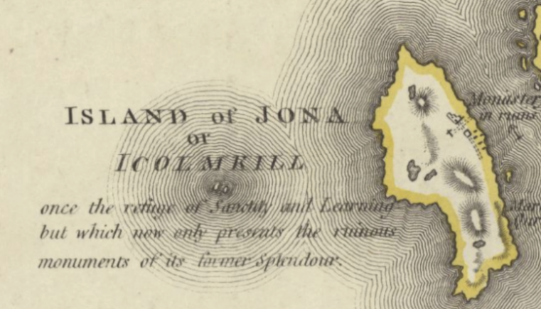 Обратите внимание на фаду в географическом названии. Это шотландский гэльский, в ирландском наклон её направо. Айона — английское название острова. И ирландцы, и скотты, а впоследствии шотландские горцы называют это святое место именно Остров Колума Килле — Ии Колум Килле, одинаково.