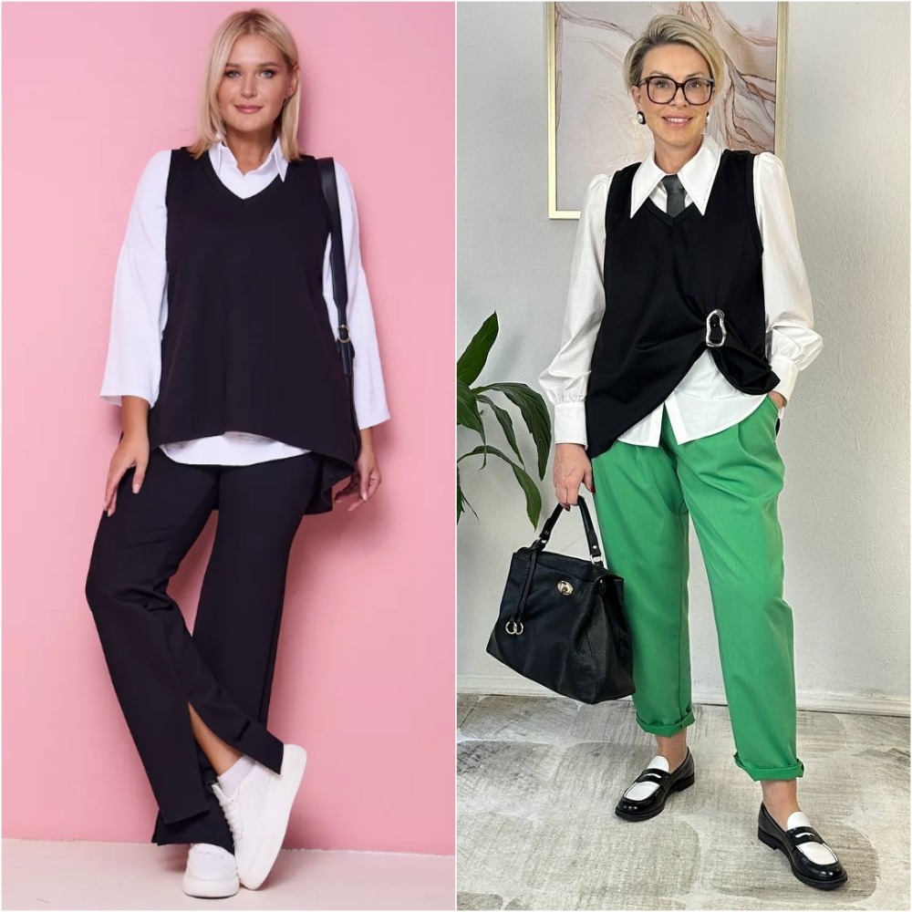 Здравствуйте, дорогие читатели! Меня зовут Ирина, я - стилист, и на этом канале показываю одежду и аксессуары с Wildberries такими, как они есть, то есть, из серии "ожидание/реальность". Мои параметры: рост 169 см, вес 67 кг, 94-74-100 ✅Основной канал: Стильно - не значит дорого! Ставьте лайк в поддержку канала, и давайте смотреть на мою сегодняшнюю покупку. Хочу поделиться своими впечатлениями о трикотажном жилете, который может показаться довольно простым и даже скучным по дизайну, но на самом деле его функциональность просто поражает воображение. Этот жилет — идеальный пример того, как базовая вещь может стать настоящим акцентом в образе. Я обожаю носить его с модными сейчас брошами, и в моем образе вы можете увидеть, как это выглядит. Закалывать брошь можно по-разному, создавая интересные драпировки и добавляя индивидуальности. Размерный ряд этого жилета очень широкий — от 50 до 68, что позволяет многим женщинам найти подходящий вариант для себя. Я выбрала размер 50-52 (решила взя