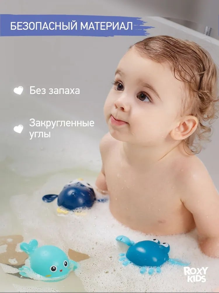 🛁 Набор заводных игрушек для ванны — черепаха, краб и птичка ждут весёлых водных приключений