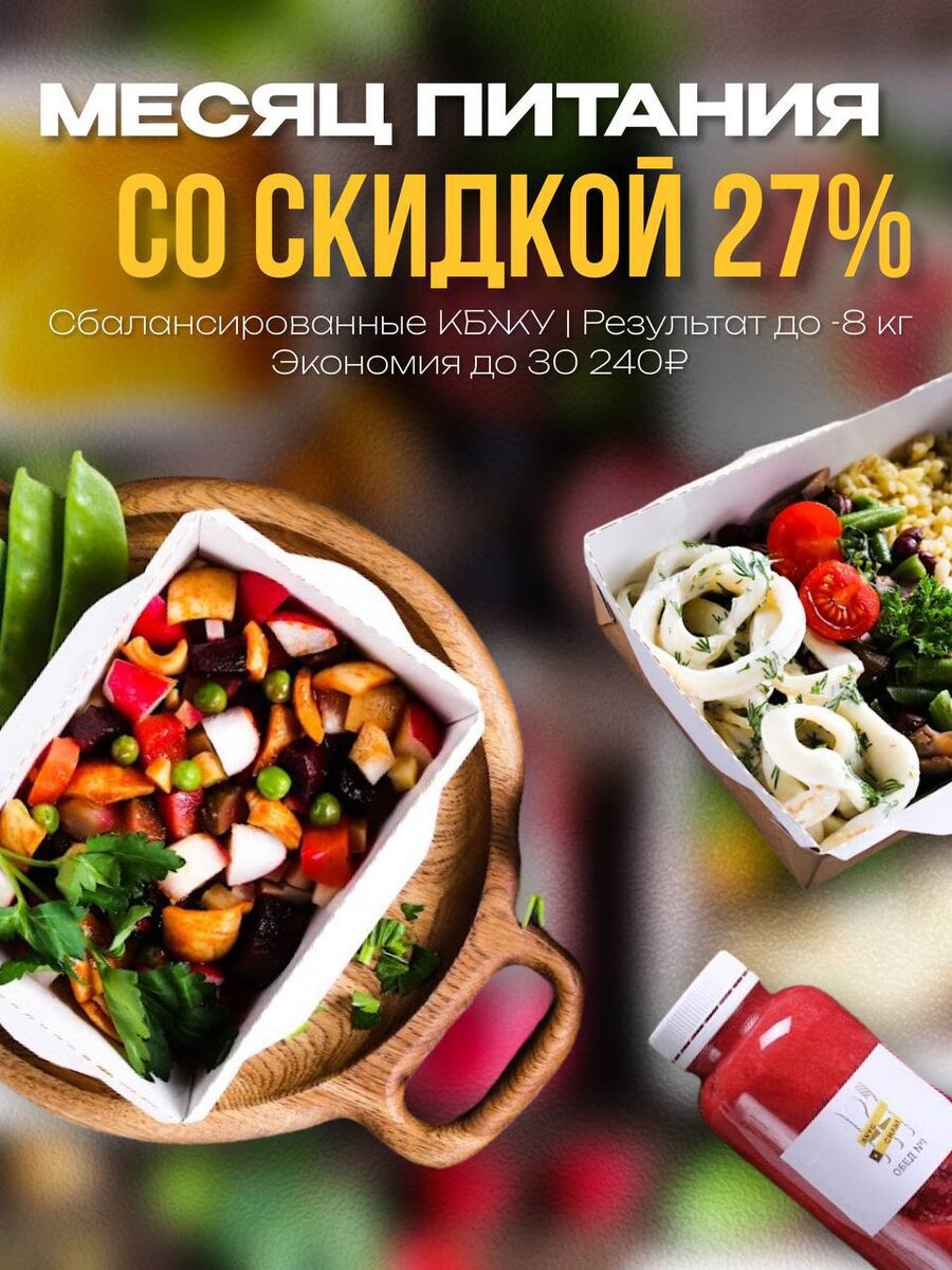 СКИДКА 27% на месяц питания от «Вкус Силы»! Весна пришла, а лишний вес остался⁉️ Мы разработали план действий, который позволит в течение месяца привести себя в форму 🚴♂️ Идея программы простая: ✔️Каждый день вы едите 7-8 блюд ресторанного уровня. ✔️Благодаря сбалансированному КБЖУ не отказываете себе в десертах. ✔️Не срываетесь из-за отсутствия сладкого и худеете до - 8 кг за месяц. ✔️Отучаете организм от усилителей вкуса и прививаете новые полезные привычки. ✔️Экономите до 30240 рублей от дневной стоимости питания. ❗️Есть только один существенный недостаток нашей программы. Вам точно придется менять гардероб на пару размеров меньше 😉 📞Наш номер телефона: +7 (499) 499-86-99 💻Наш сайт