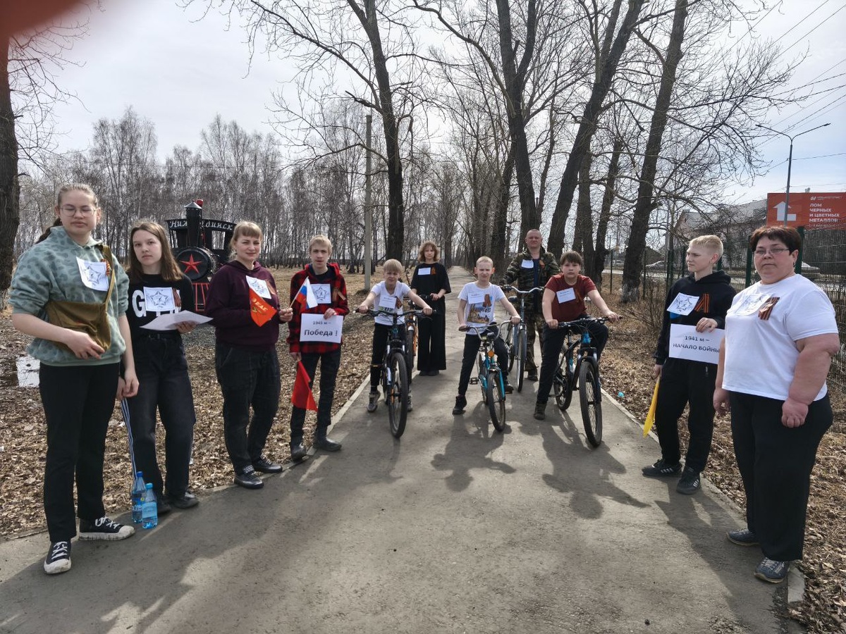 #Трек7 «Волонтерство и помощь» Доброе дело 9: Организация велопробега В теплый весенний денёк, команда «Багульник» выбралась в парк Железнодорожников. Не просто на прогулку, а на велопробег «Километры Победы»! Подготовились основательно: прошли инструктаж, принесли необходимые атрибуты, аптечку, питьевую воду. Отметили точки старта , финиша и контрольные точки. Каждый из участников взял на себя зону ответственности: регистрировала участников Нечаева Дарья, регултровка движения – Шульга Данил, первая помощь и питьевой режим – Солдатенко Анастасия, видео/фотосъемка и хорошее настроение – педагоги и родители команды. И пусть участников было немного, но азарт соревнования и хорошее настроение сопровождали участников и организаторов велопробега. Все были рады совместно проведенному времени! Ссылка на видеоролик: https://disk.yandex.ru/i/tVC_cuDleNJ8zA #80ДобрыхДелКПобеде #ФорумКлассныхРуководителей #Сферум80ДобрыхДел
