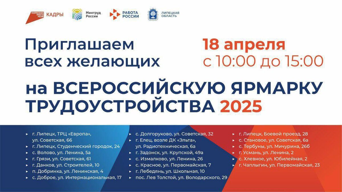 ❗️18 апреля, в Липецкой области пройдёт Всероссийская ярмарка трудоустройства