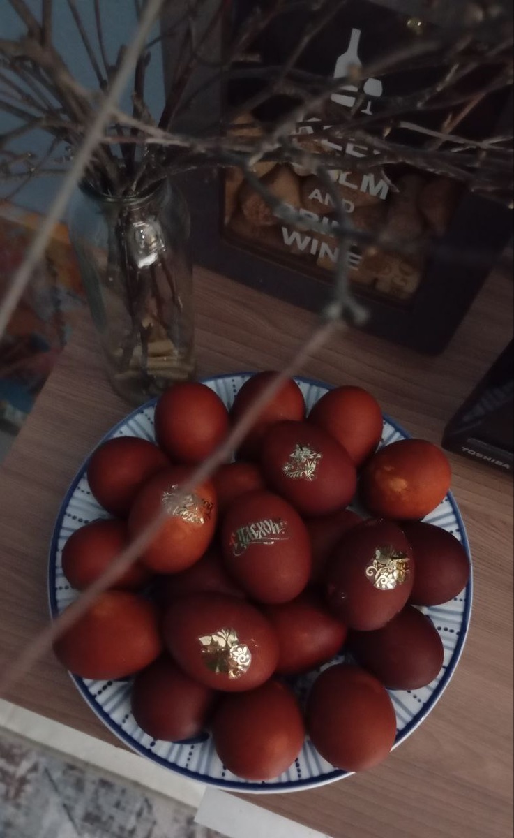 На куличи сил сегодня не хватило, успею в ближайшие дни. Но яица покрасила.