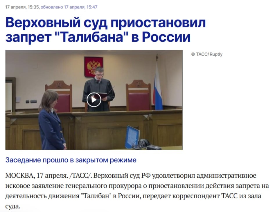 Новости хорошие: Талибан снова разрешён в Российской Федерации