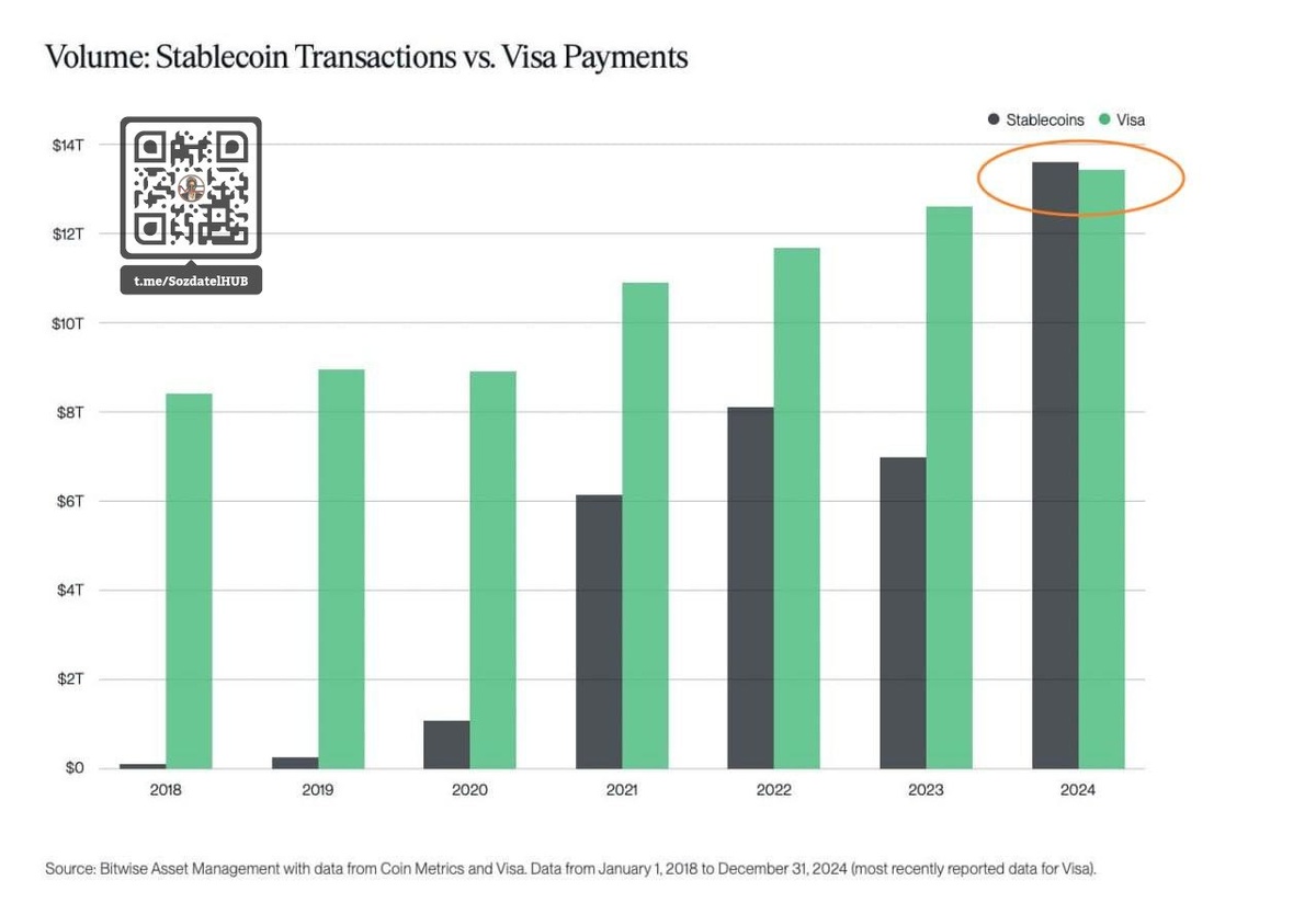 @Разумный Инвестор: "..ЗА 2024 ГОД ОБЪЁМ ТРАНЗАКЦИЙ В СТЕЙБЛКОИНАХ ВПЕРВЫЕ ПРЕВЗОШЁЛ VISA.. ..Рынок цифровых активов не просто останется - он станет доминирующим. И прямо сейчас закладывается фундамент для следующего движения котировок, независимо от того, замечает это толпа или нет." |HUB|