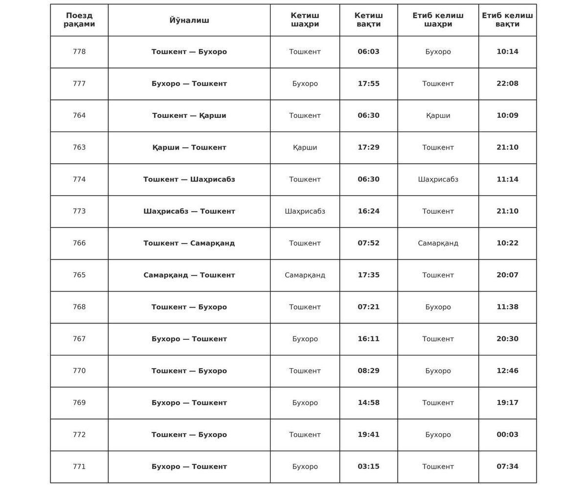 15-iyundan boshlab Afrosiyob tezyurar poezdlari harakati jadvaliga o‘zgartirishlar kiritiladi