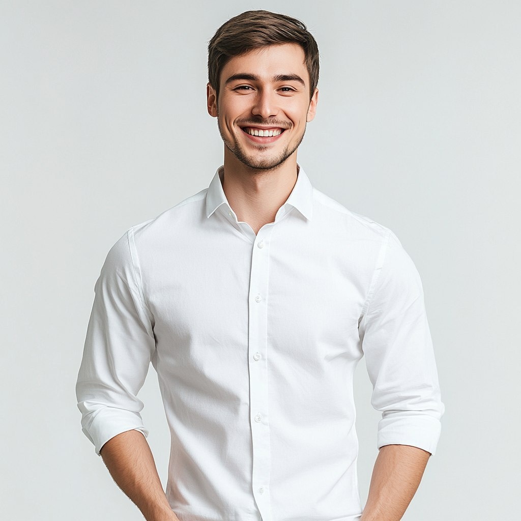 Создано на основе запроса: A realistic photo of 30y.o. ukrainian man who is SMM manager, to the waist, smiling , wearing casual (white), modern clean look, front view, bright lighting, no background, professional photography, shot on Canon EOS 5D, ultra-realistic --- Автоперевод: Реалистичная фотография 30y.O. Красиво выглядит? 🤔 https://dzen.ru/id/65c0c65c86e4f837c27b24d7 #ИИ #AI #нейросеть #midjourney #art