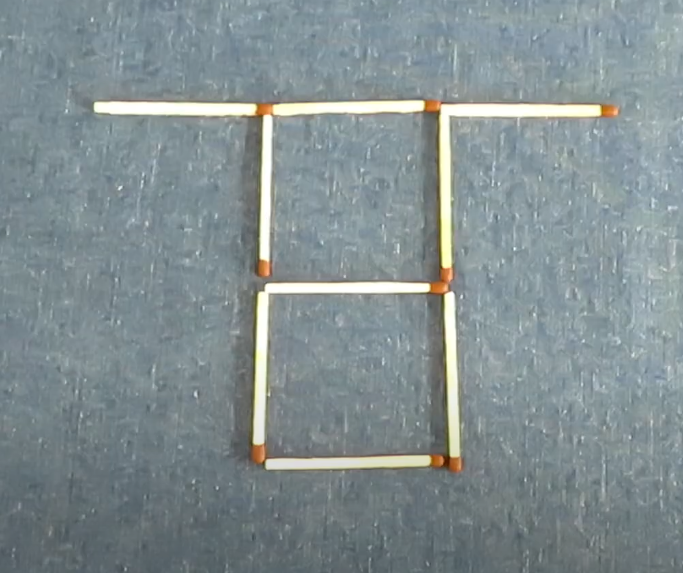 Переложите 2 спички так, чтобы получилось 3 одинаковых квадрата.