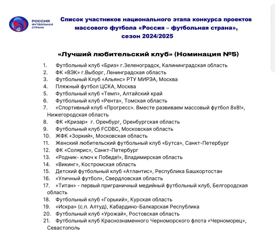 ФК "Кризар" | Оренбург - участник национального этапа Конкурса "Россия - футбольная страна" ! И это второй год подряд
