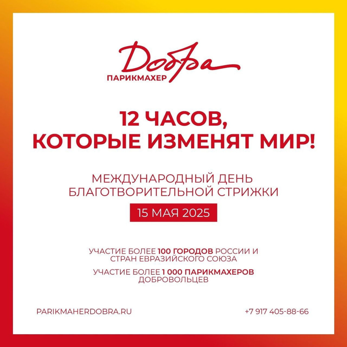 Хәйриә акцияһы 15 майҙа Рәсәйҙең йөҙ ҡалаһында һәм Евразия союзы илдәрендә үтәсәк. Проект хәстәрлеккә мохтаж булғандарға ярҙам итеү өсөн сәс оҫталарын берләштерәсәк. Акция илдең көнсығышында башлана һәм Калининградҡа тиклем бара. 12 сәғәт дауамында парикмахерҙар, кешеләргә яңы образ һәм үҙ-үҙҙәренә ышаныс бүләк итеп, бушлай сәс аласаҡ, тип хәбәр итә "Республика Башкортостан" гәзите БР Ғаилә, хеҙмәт һәм халыҡты социаль яҡлау министрлығы мәғлүмәтенә һылтанма менән. Акцияға һәр оҫта ҡушыла ала. Бының өсөн ҡалала йәки ауылда хәйриә сәс ҡырҡыу сараһына ҡушылып, уның фотоһүрәттәрен ебәрергә кәрәк. Улар тура эфир ваҡытында баҫылып сығасаҡ. Тулыраҡ мәғлүмәт - Телеграмда Стрижкадобра төркөмөндә 2025 йылдың 15 майында. Инфографика - акцияны ойоштороусыларҙың сайтынан.