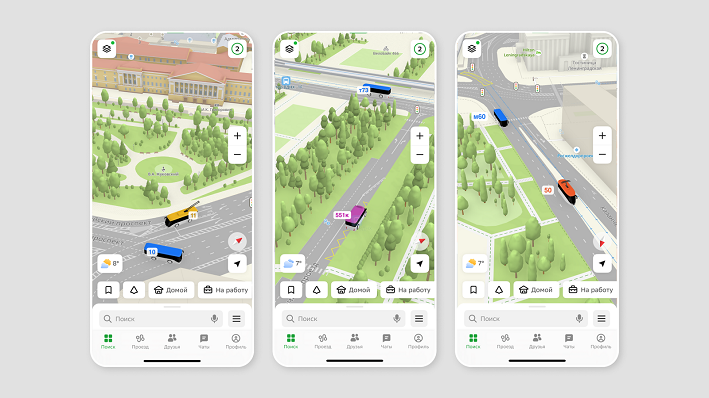 На картах теперь ездят по маршрутам реалистичные 3D-модели, сообщили в пресс-службе информационной системы. Автобусы, троллейбусы, трамваи и маршрутные такси движутся по улицам в режиме реального времени. «Мы продолжаем развивать карты в сторону максимальной реалистичности. Сначала появились объемные здания, достопримечательности, парки и дороги с разметкой. Теперь улицы оживают за счет движущегося транспорта. Это не просто визуальный эффект, а результат сложной технологической работы, объединяющей данные, анимацию и точную геолокацию. Функция помогает пользователям быстрее ориентироваться в городе и точнее понимать, где находится нужный вам автобус», — пояснил руководитель отдела развития карты в 2ГИС Андрей Кочанов. Чтобы на карте появились 3D-модели, нужно включить слой «Транспорт» и реалистичные эффекты, а затем приблизить карту. Синим цветом обозначены автобусы, красным — трамваи, желтым — троллейбусы, сиреневым — маршрутные такси. Инфографика: 2ГИС.