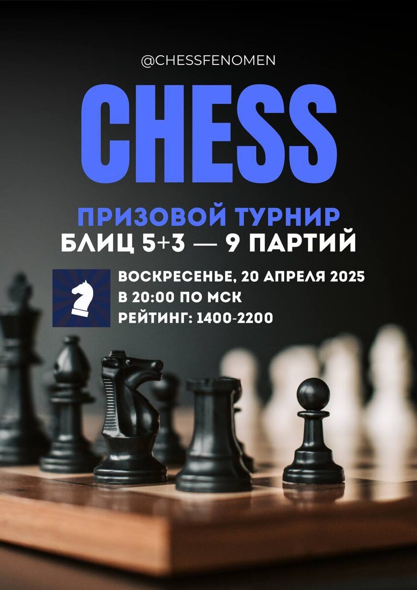 ПАРОЛЬ НА ПРИЗОВОЙ ТУРНИР ОТ @CHESSFENOMEN 📎ПРИЗЫ 1 место — 1000₽ 2,3 место — подписки на chess.com 📎УСЛОВИЕ Быть подписчиком @Шахматы - Школа Феномен ДЛЯ УЧАСТИЯ В ТУРНИРЕ НЕОБХОДИМО ВСТУПИТЬ В НАШ КЛУБ НА LICHESS⬇️ https://lichess.org/team/chessfenomen ПАРОЛЬ ДЛЯ ПОДКЛЮЧЕНИЯ НА ТУРНИР⬇️ Турнир: «Апрельский блиц» Код: AprilBliz Очень важно писать пароль вручную! Ссылка на сам турнир:⬇️ https://lichess.org/swiss/d1aAF0IM Накидайте реакций, кто уже присоединился к турниру💙
