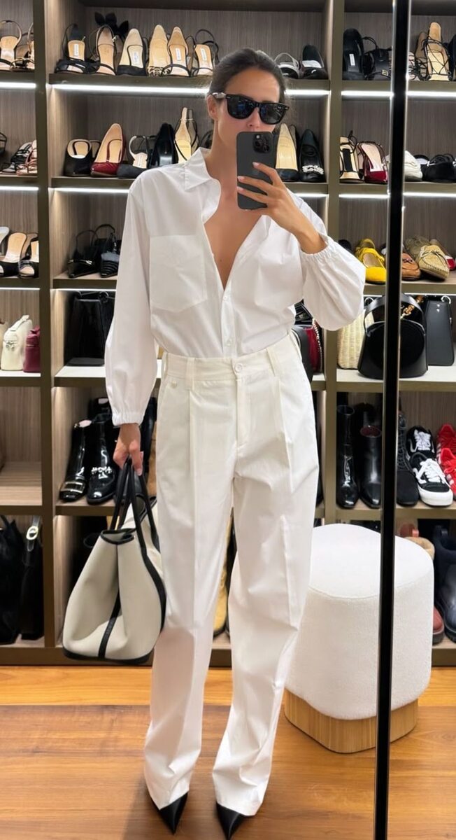 1. Белый total look + черные акценты: элегантность в каждом движении