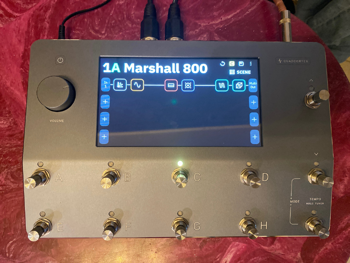 Цифра вышла на новый уровень, если так называемое второе поколение процессоров 21 века (я считаю Кемпер первым все-таки, а Хеликс и Хэдраш вторым) умело раскрыть характер каждого усилителя, что можно было безошибочно угадать модель, но сейчас будет сложно отличить оригинал от плагина. Уверен, даже убежденный лампофил с отличным слухом ошибется и не сможет на слух определить у минимум 5 из 10 гитарных фраз источник их появления. И при всем при этом он не пугает своей сложностью, как это делает Фрактал, спустя полчаса игры на заводских пресетах я за 5 минут построил пресет на фото - простой Маршалл с грелкой, кабиной, дилеем и ревером, на 3 канала - ритм и два лид канала с большим гейном и громкость, с дилеем и без. Не через компьютер, а с процессора, сидя на коленях. Создание пресетов и их изменение здесь напоминает серфинг с Айпада. Фины определенно сотворили шедевр и создали новый стандарт для всех будущих флагманов от Лайна и Фрактала, уверен через пару лет мы увидим их в похожем корпусе с большими сенсорными экранами и каталогами. А еще он умеет моделировать так называемые слепки любой педали и усилителя, правда пока что не могу понять, нужно ли это все, когда внутри великолепные плагины. В будущем, может быть, попробую.