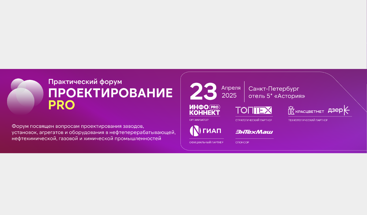 Впервые в России компанией ИНФОКОННЕКТ ПРО организован практический форум, посвященный проектированию объектов нефтегазовой и химической отраслей. Мероприятие пройдет при поддержке ТопТех, ГИАП, Красцветмет, дзер и ЭнТехМаш.