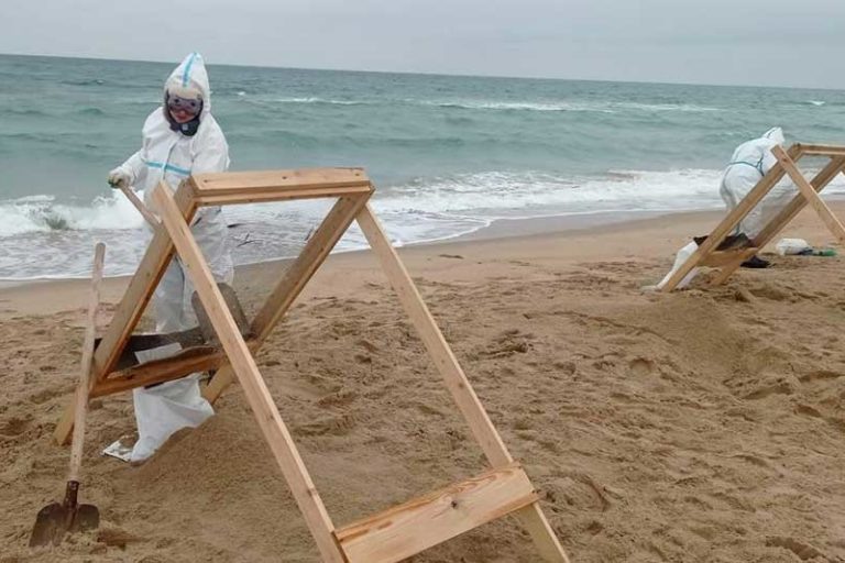 Ранее полностью убрать весь загрязненный песок планировали до 15 апреля. Однако сроки пришлось скорректировать из-за ограниченного числа сертифицированных предприятий, которые готовы утилизировать песок. А также из-за производственных возможностей этих компаний. Очищать песок от нефтепродуктов будут только компании из Краснодарского края, так как в соседних регионах не смогли предоставить площадки. Сейчас все полигоны, где можно было разместить замазученный песок, заняты. По мере их освобождения и утилизации, песок продолжат вывозить с площадки, сообщили в оперштабе Краснодарского края. На 16 апреля 2025 года на площадке временного накопления остается более 67 000 тонн песка – его планируют вывезти по конца мая.