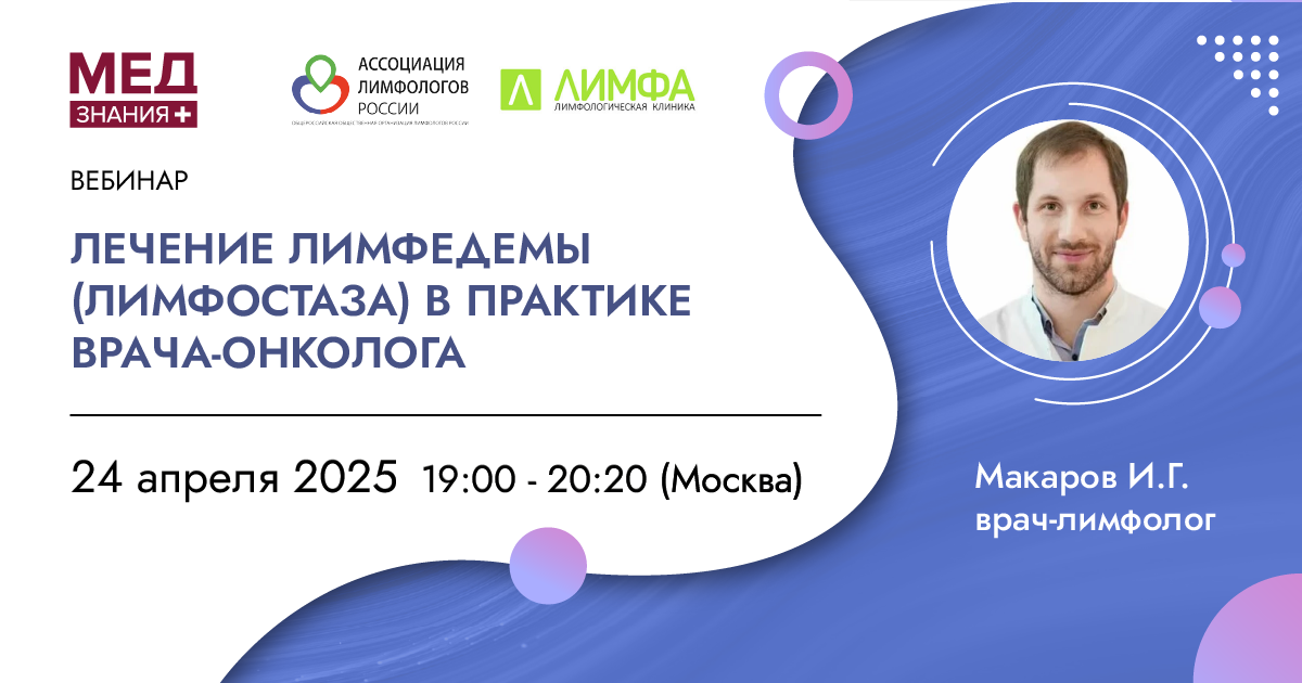 24 апреля 2025 г. в 19:00 состоится вебинар на тему: «Лечение лимфедемы (лимфостаза) в практике врача-онколога». Спикер: Макаров Иван Геннадьевич – врач-лимфолог, Руководитель НПЦ ЛИМФА, исполнительный директор Ассоциации Лимфологов России, главный редактор журнала LIMPHA. В рамках мероприятия будут рассмотрены вопросы, касающиеся лечения лимфедемы и ведения пациентов с данным заболеванием. Акцент будет сделан на комплексном подходе к профилактике и лечению последствий лечения онкологических заболеваний, связанных с нарушением функции лимфатической системы. Мы разберемся в клинических рекомендациях «Лимфедема конечностей» и зарубежных гайдлайнах. Обсудим результаты применения комплексной физической противоотечной терапии (КФПТ, CDT), уровень доказательности — 1В, использования компрессионного трикотажа для профилактики и лечения лимфедемы, уровень доказательности — 1А и современные алгоритмы хирургического лечения лимфатических отеков. Лекция будет насыщена практической информацией, со