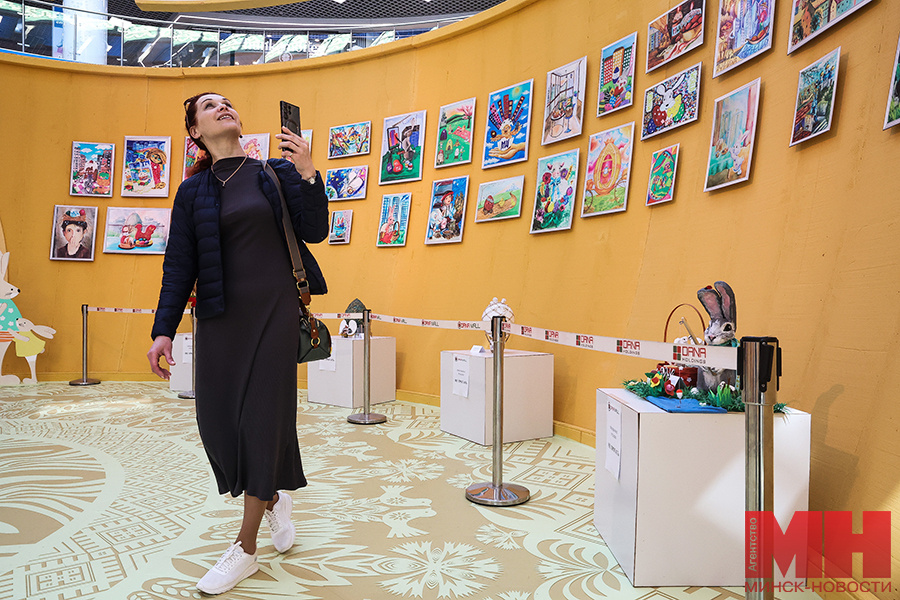 В популярном торговом центре на пр. Независимости открылась новая праздничая фотозона в честь приближающейся Пасхи. Чем удивили на этот раз — в материале корреспондента агентства «Минск-Новости». На первом этаже центра появилось золотое яйцо высотой в несколько этажей. Внутри оригинального строения — пасхальная выставка детских рисунков. На изображениях можно увидеть не только главный символ праздника округлой формы, но и кроликов, и цыплят, и аистов. Кроме рисунков внутри инсталляции представлена экспозиция декоративных яиц, которые тоже сделаны детьми. Напомним, в 2024 году на первом этаже ТЦ установили бюсты мужчины и женщины — композиция напомнила статуи Али и Нино в Батуми. Пол в центральном холле был украшен пасхальными яйцами всех возможных цветов. Фото Сергея Мицевича