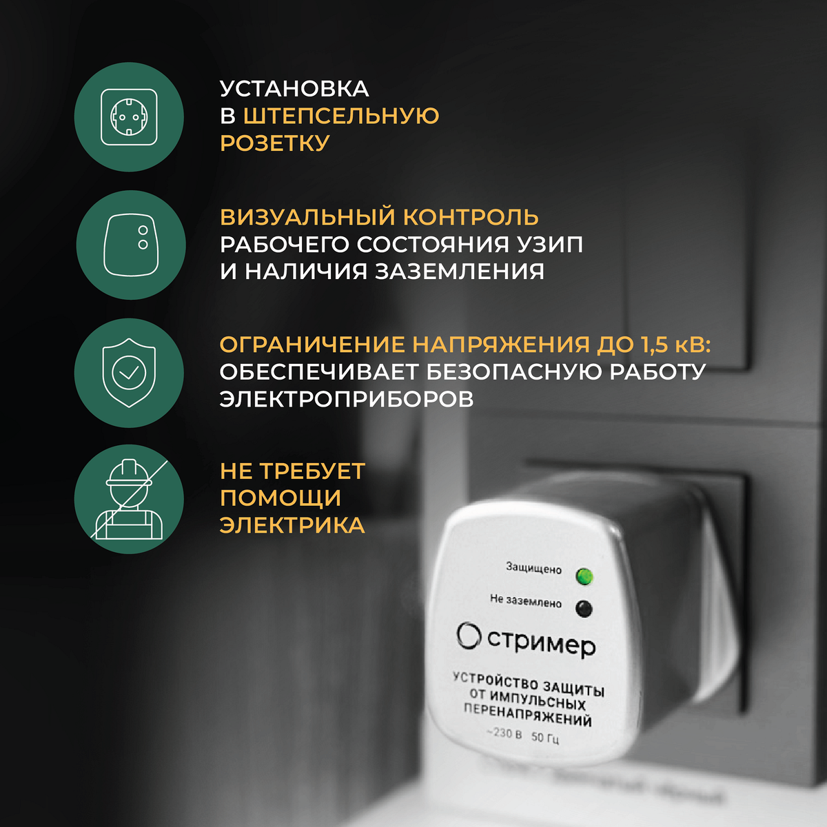 Разработанное нами устройство УЗИП РИФ-Д просто вставляется в розетку и позволяет защищать бытовую технику при ударах молнии даже там, где нет возможности установить УЗИП в щиток. Вынимать приборы из розетки теперь нет необходимости.