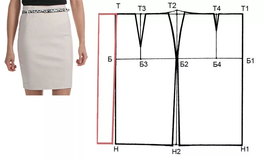Вытачки – это то, что делает юбку приталенной. Я распределяю разницу между обхватом бедер и талии в вытачки. Разница: 96 –. 70 = 26 см. На каждую деталь (перед и зад) приходится по 26 ÷ 4 = 6,5 см. Эти сантиметры я превращаю в вытачки.