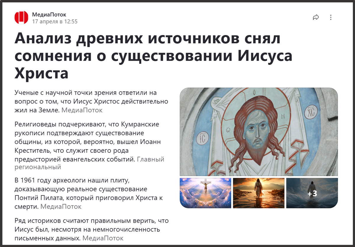 Или это традиционный «праздничный инфоповод» — чтобы к Пасхе или Рождеству внезапно «обнаружить» нечто сенсационное в области раннего христианства?